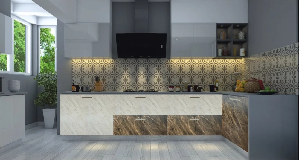 Marble Glossy Kitchen Cabineth